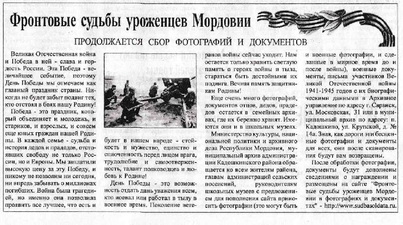19.04.2019 Газета «Возрождение»: «Продолжается сбор фотографий и документов»
