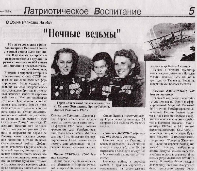 19.04.2019 Газета «Возрождение»: «Ночные ведьмы»