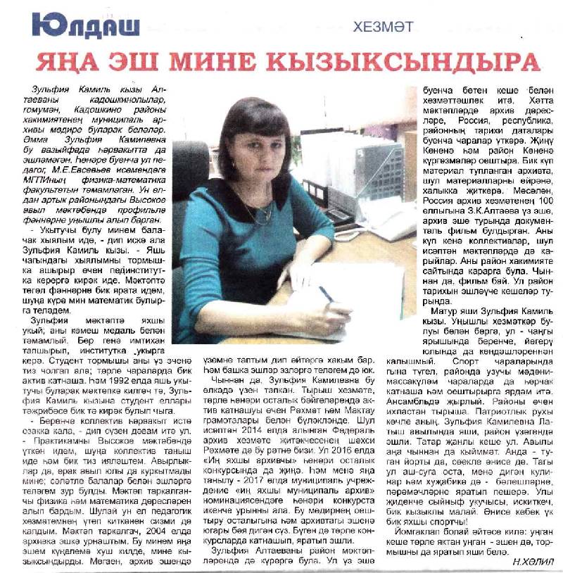 05.06.2019 Газета «Юлдаш»: «Яна эш мине кызыксындыра»
