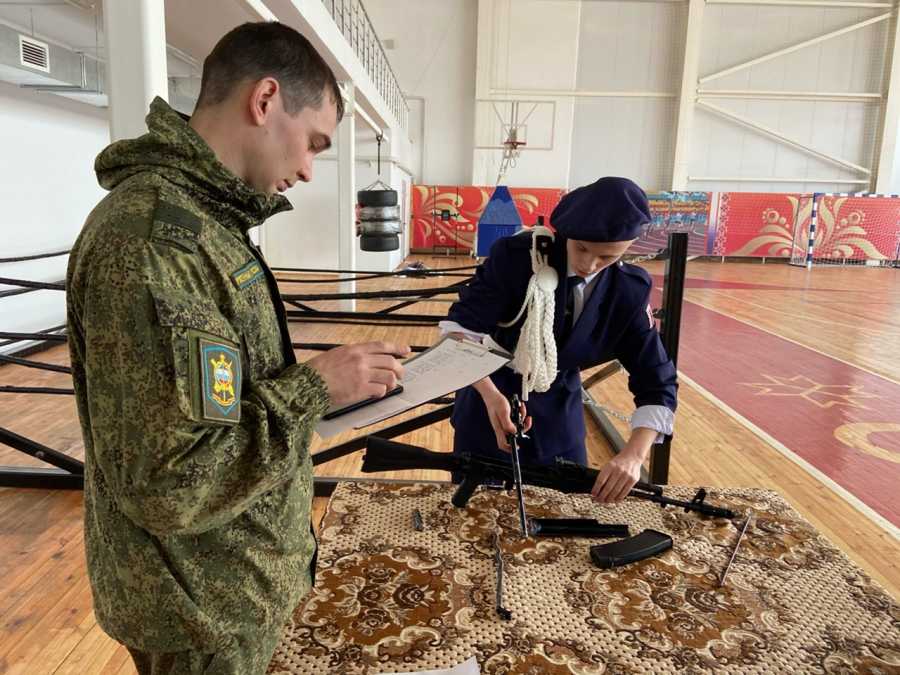 Ребята показали навыки в строевой подготовке, физической – подтягивание на перекладине, огневой – стрельба из ПВ, разборке – сборке АКМ.