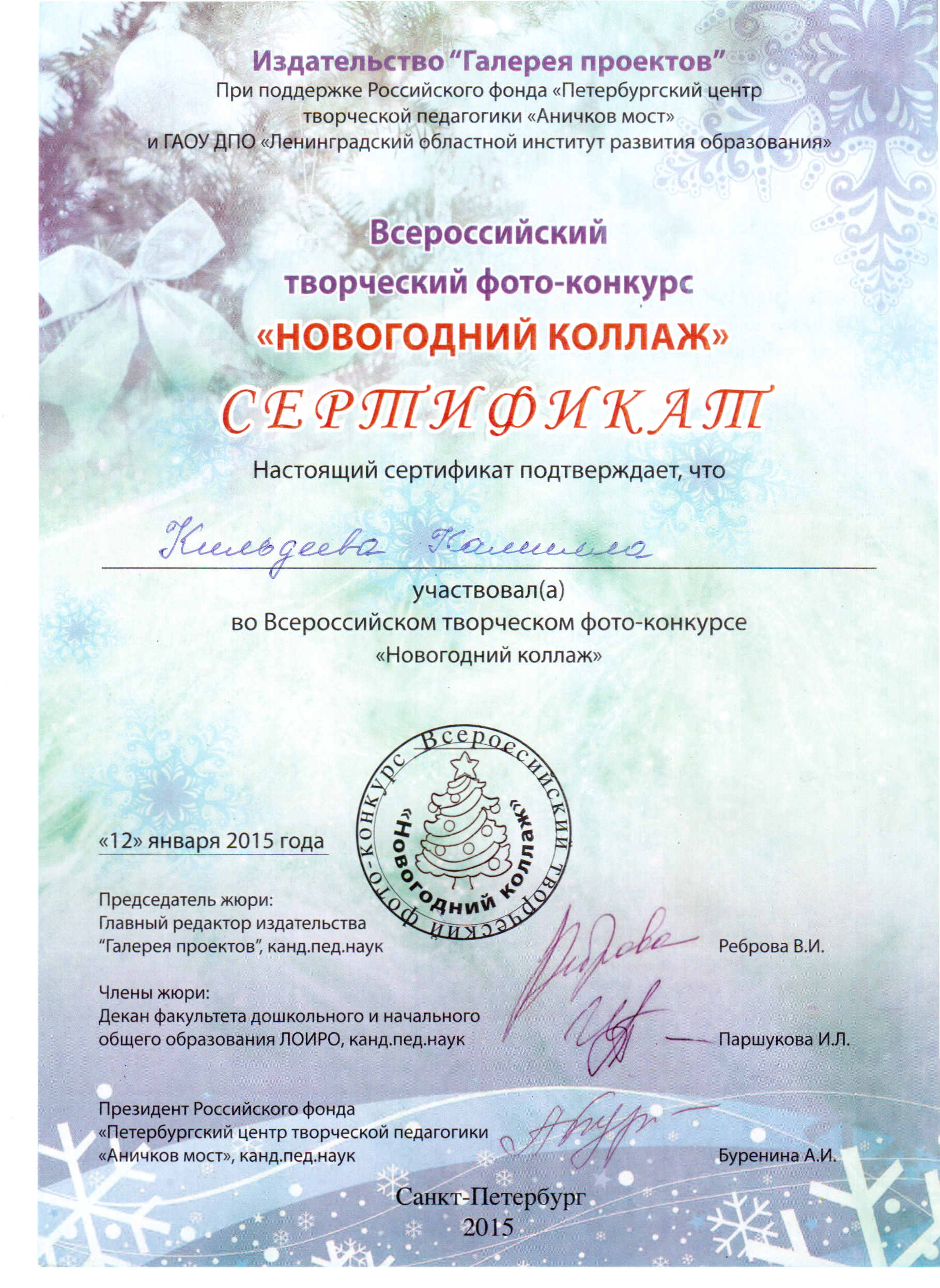 10. Сертификат за участие в конкурсе Кильдеева Камилла 3 года