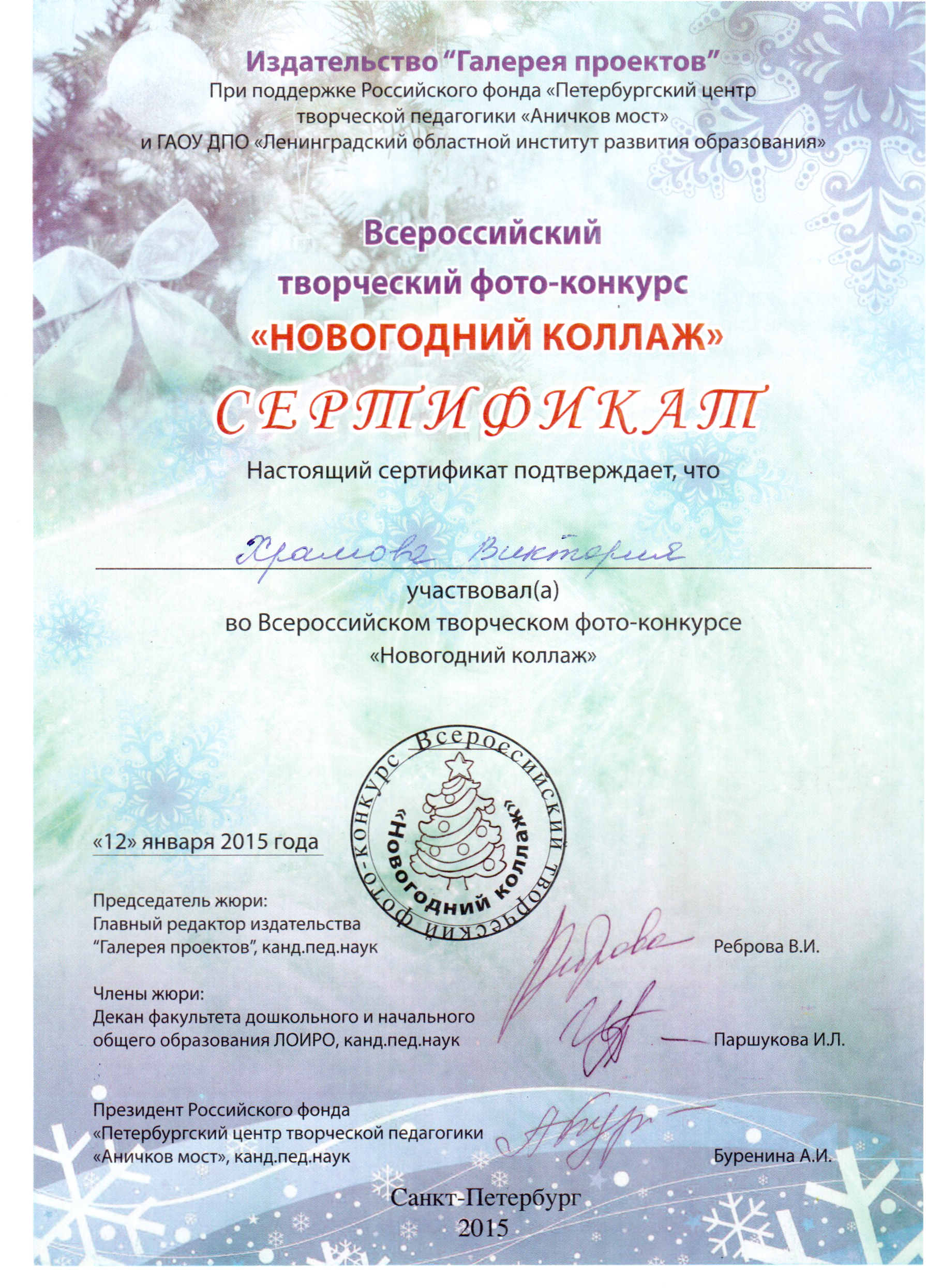 9. Сертификат за участие в конкурсе Храмова Виктория 5 лет