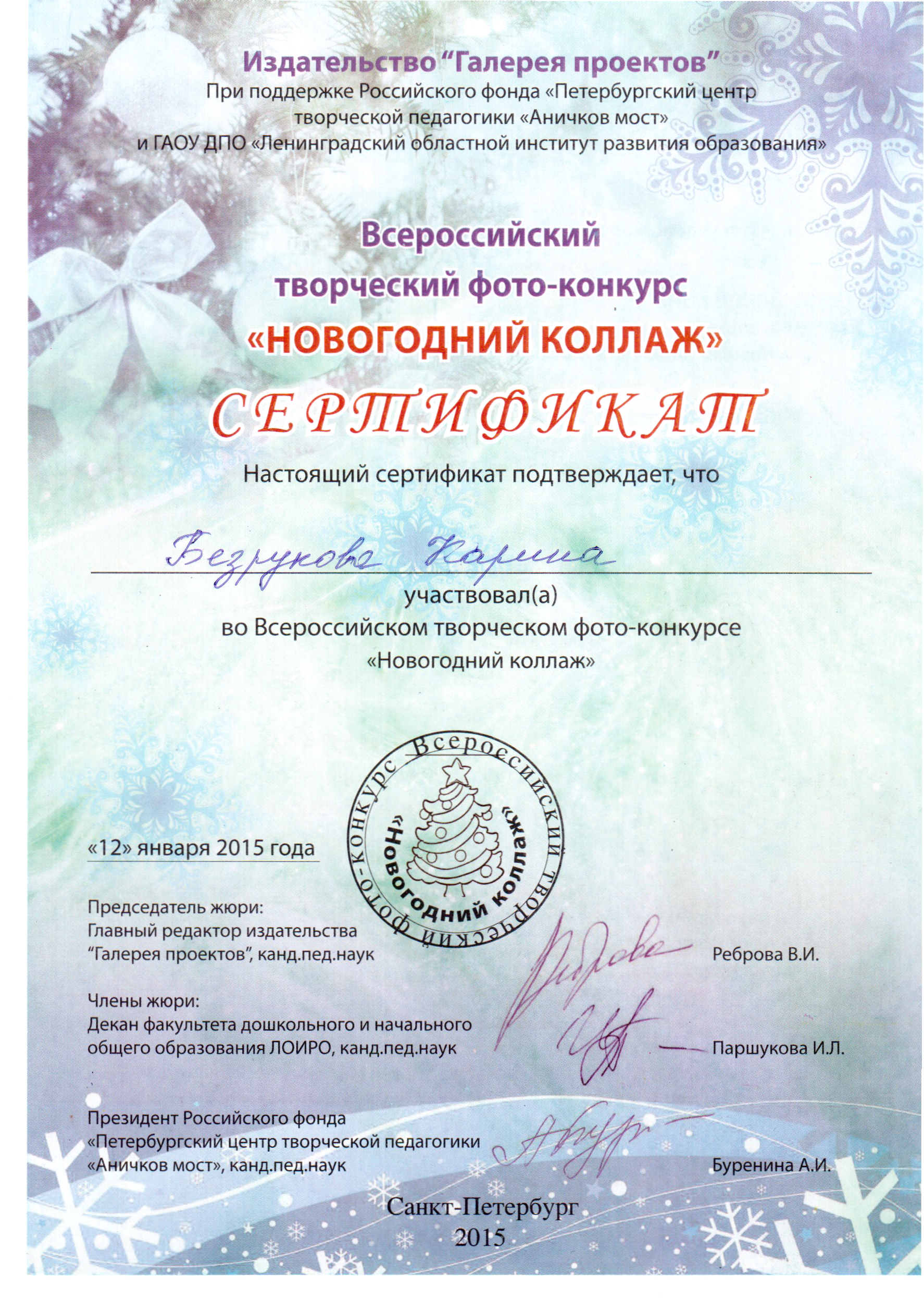 6. Сертификат за участие в конкурсе Безрукова Карина 5 лет