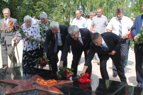 После открытия памятника коллективы и организации поселка возложили цветы к вечному огню.