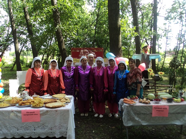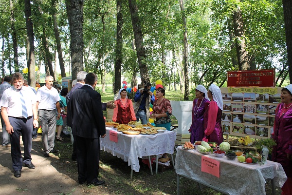 Вниманию зрителей и гостей праздника наше поселение представило экспозицию, которая состояла из 3 частей: «Щедрый татарский стол», «Урожай у нас хорош» и «Дары реки Исса». Были воссозданы элементы татарской избы: печь, домашняя утварь. Так же вниманию собравшихся была представлена фотовыставка «Достопримечательности нашего села».