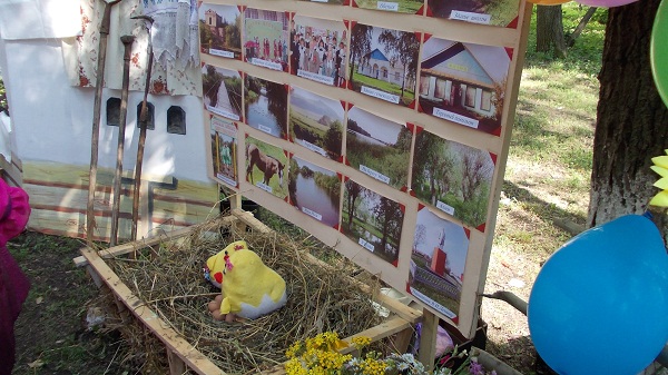 Наше село расположено по берегам двух рек: Исса и Тарса, поэтому в своей экспозиции мы не могли обойти «речную» тему. Особое внимание зрителей привлек импровизированный берег реки Исса с речной осокой, гусем и утками.