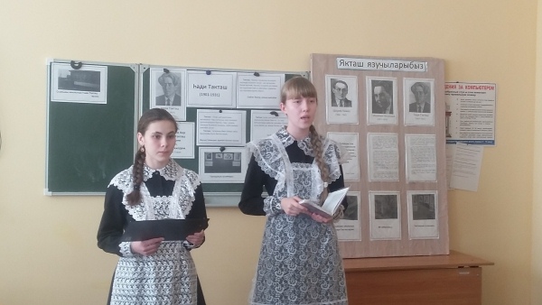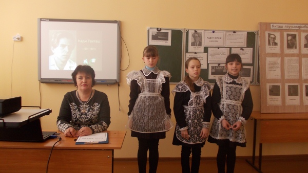 15 января в МБОУ «Большеполянская ООШ» состоялось мероприятие «Чтоб мир увидеть с высоты…», посвященный 115-летию со дня рождения классика татарской поэзии Хади Такташа. С рассказом о личности и творчестве нашего земляка татарского поэта Х.Такташа, его месте в татарской литературе рассказала учащимся учитель татарского языка и литературы Кильдеева З.Х. Учащихся 5-9 классов Долотказина Диляра, Долотказина Диана,Ахметова Самира,Ахметова Альмира,Кильдеев