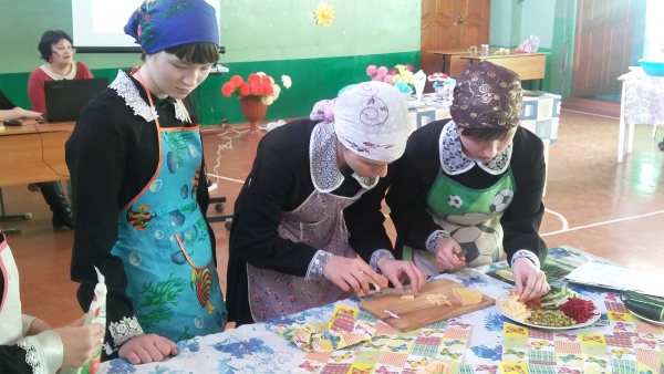 Учащиеся школы тоже не были сторонними наблюдателями на этом мероприятии. Они, поделившись на две команды, показали собравшимся, насколько хорошо они умеют накрывать праздничный стол, готовить салаты. Удивили всех мальчики-старшеклассники тем, что мастерски лепили манты. У них это получалось лучше, чем у девочек.