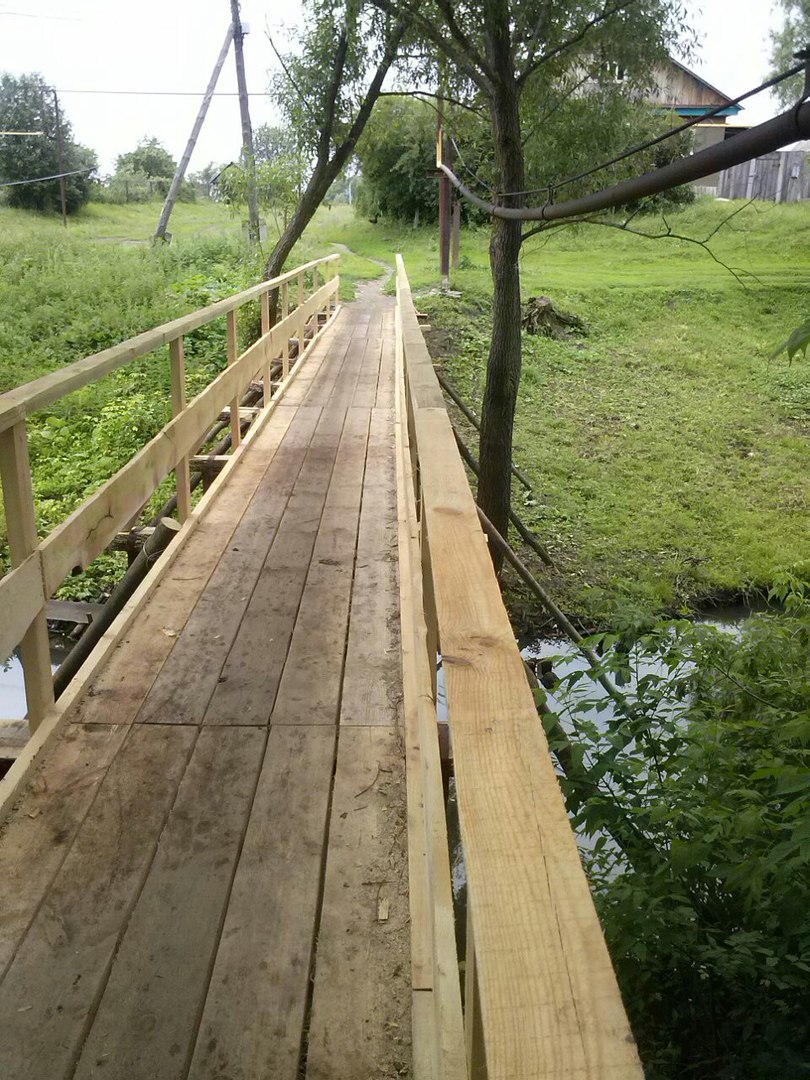 Пешеходный мост через реку Тарса, соединяющий улицы Советская и Мирная, не самый большой из имеющихся шести мостов. Построен он был давным-давно, и с тех пор только частично ремонтировался. Ввиду этого несущие конструкции сооружения пришли в негодность. И жители села, вынужденные по нескольку раз в день переходить по нему ( на работу, в магазин, по хозяйственным нуждам и т.п.) , рисковали свалиться в реку.