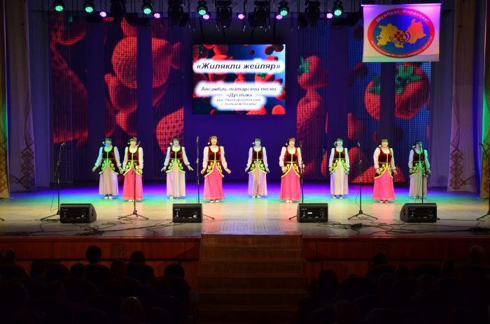 В состав делегации нашего района входил и большеполянский ансамбль татарской песни «Дуслык». Ими на суд зрителей была представлена новая песня «Җиләкле җәйләр”.