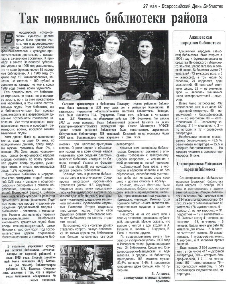 26.05.2017 Газета «Возрождение» «Так появились библиотеки района»
