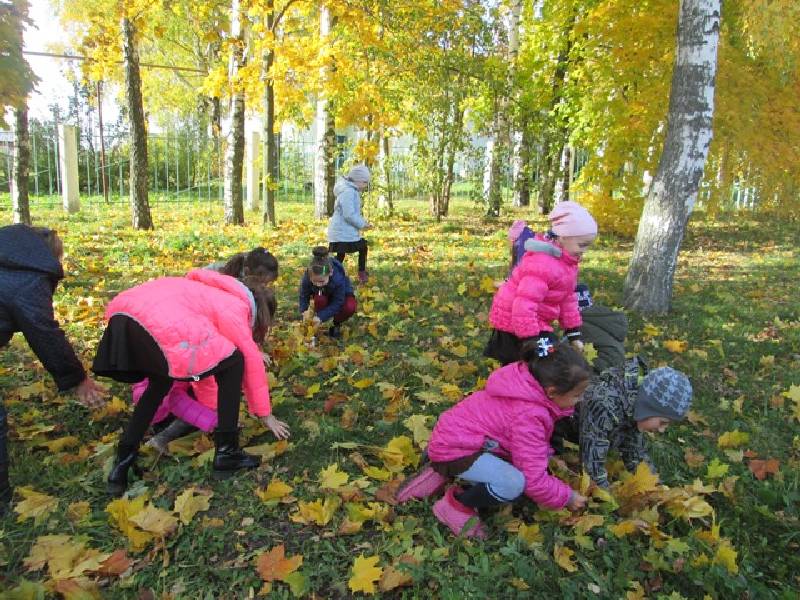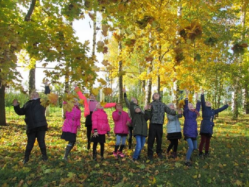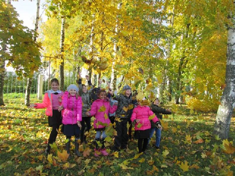 Дети прислушивались к звукам вокруг, к щебетанью птиц, увидели воробьев и синичек на ветках деревьев. Заметили, что грачи осенью кричат совсем не так, как весной. Но самым интересным было любование красотой деревьев и яркой палитрой разноцветных листьев. Ребята наслаждались шуршанием листвы под ногами и потом устроили фейерверк из осенних листьев.