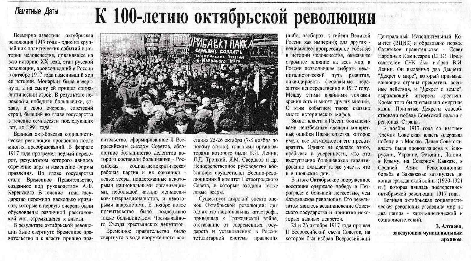 03.11.2017 Газета «Возрождение»: «К 100-летию октябрьской революции»