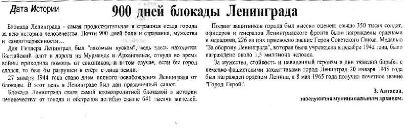 26.01.2018 Газета "Возрождение": "900 дней блокады Ленинграда"