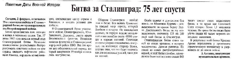 02.02.2018 Газета «Возрождение»: «Битва за Сталинград: 75 лет спустя»