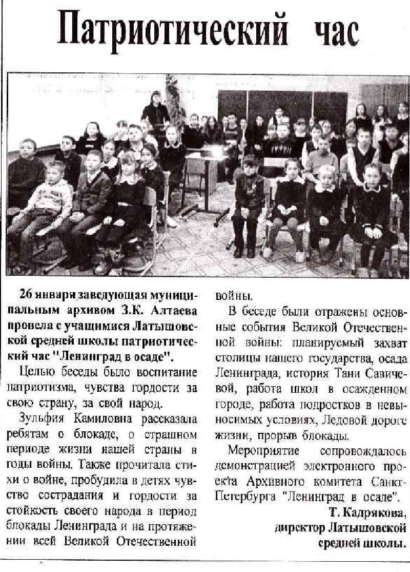 02.02.2018 Газета «Возрождение»: «Патриотический час»