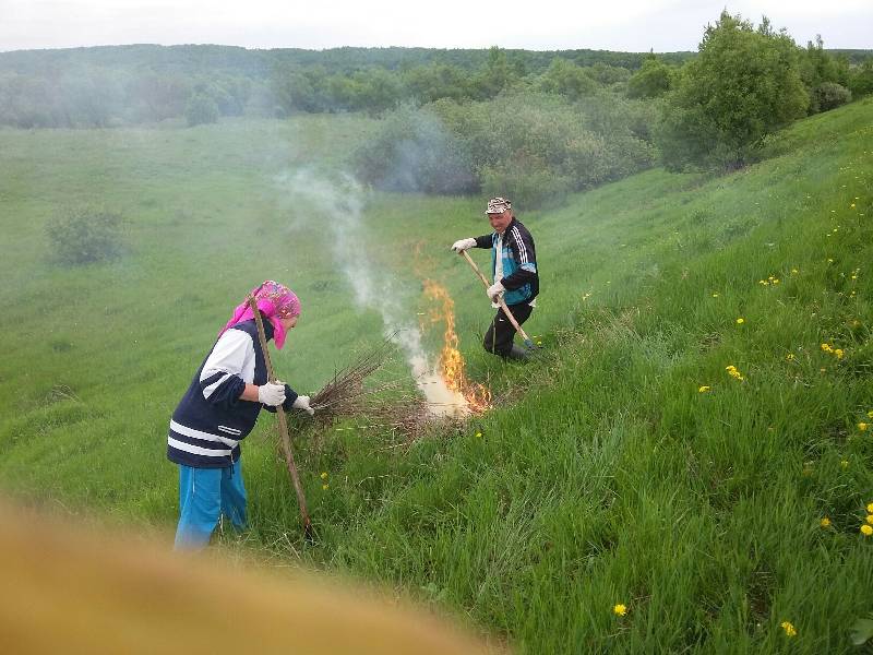 растительности. Мусор собирали в мешки, а сухую растительность